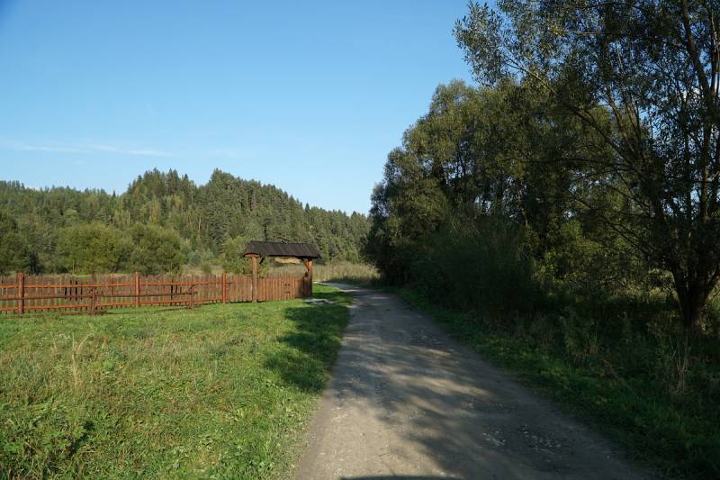 miejscowości Waksmund, przez Ostrowsko, Łopuszną, Harklową do mostu w Knurowie. Szlak
