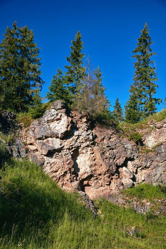 - Kamieniołom zachodni - odsłania górnokredowe margle, głównie czerwone, ale również szare i zielone. Należą one do ogniwa margli z Pustelni, formacji z Jaworek.