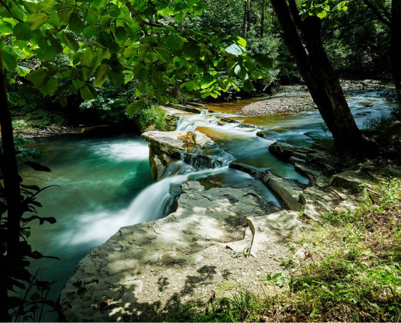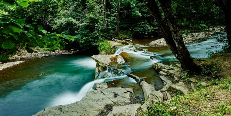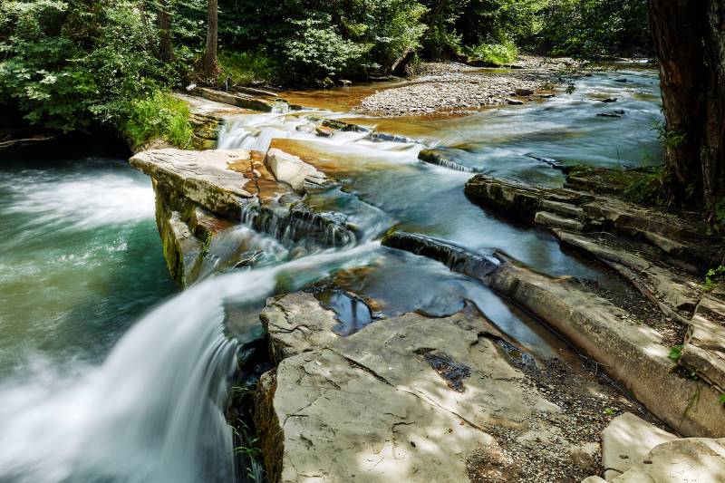 Nachádza sa v samom centre obce, poniže kostola. Vznikol na hrubej skalnej vrstve pieskovca, v koryte potoka Kacvínianka, je vysoký 7 m a široký 10 m. Viac ako 200 rokov (až do 80-tych rokov 20. storočia) fungovali pri vodopáde mlyn a píla, ktoré boli poháňané silou padajúcej vody. Koniec využitia vodnej sily priniesla elektrifikácia zariadení a povodeň v roku 1995, ktorá zobrala mlynské koleso.