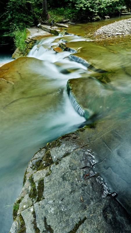 Nachádza sa v samom centre obce, poniže kostola. Vznikol na hrubej skalnej vrstve pieskovca, v koryte potoka Kacvínianka, je vysoký 7 m a široký 10 m. Viac ako 200 rokov (až do 80-tych rokov 20. storočia) fungovali pri vodopáde mlyn a píla, ktoré boli poháňané silou padajúcej vody. Koniec využitia vodnej sily priniesla elektrifikácia zariadení a povodeň v roku 1995, ktorá zobrala mlynské koleso.
